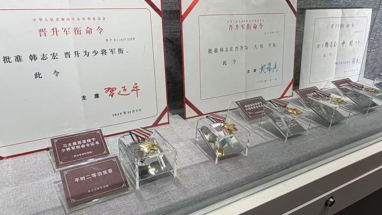 2025年9月,怀着对历史的敬畏与对红色血脉传承的深切责任感,韩志宏将军将其珍藏几十载的30件珍贵实物无偿捐赠给天全县红军纪念馆。这批藏品包括立功证书、军功章、授衔命令等。这些实物不仅真实还原了一位军人的成长轨迹,更生动勾勒出两代共产党人坚定信念、忠诚报国的精神图谱。